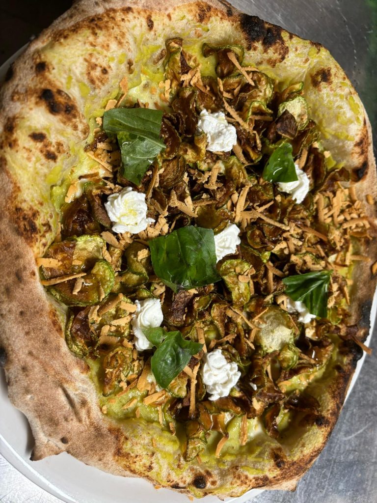 Pizza contemporanea realizzata con farine selezionate e ingredienti a km 0, cotta nel nostro forno a legna per un risultato fragrante e digeribile.